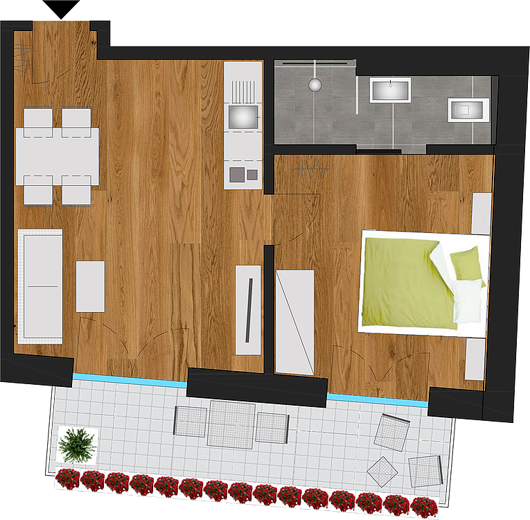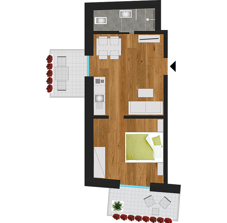 L’appartamento di „tipo D“ è situato al pianoterra della nostra casa. Dispone di una cucina abitabile, una camera da letto matrimoniale con armadio e cassaforte integrata nonché di un bagno con doccia, WC e asciuga capelli. ulteriori informazioniLa cucina abitabile è completamente arredata ed attrezzata (fornello elettrico, lavastoviglie, macchina da caffè e bollitore). Oltra alla zona pranzo, la cucina abitabile dispone di un divano letto e di un guardaroba. Inoltre, è a disposizione dell’ospite un TV con flat screen e attacco SAT, Wlan gratuito, uno stendibiancheria, lenzuola, asciugamani e un aspirapolvere. L’appartamento è adatto a persone che soffrono di allergie.