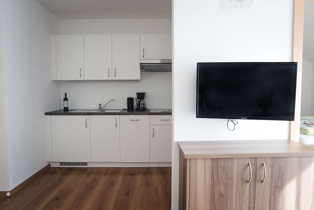 L’appartamento di „tipo A“ è situato al secondo piano della nostra casa. Dispone di una cucina abitabile, una camera da letto matrimoniale con armadio e cassaforte integrata nonché di un bagno con doccia, WC e asciuga capelli. ulteriori informazioniLa cucina abitabile è completamente arredata ed attrezzata (fornello elettrico, lavastoviglie, macchina da caffè e bollitore). Oltra alla zona pranzo, la cucina abitabile dispone di un divano letto e di un guardaroba. Inoltre, è a disposizione dell’ospite un TV con flat screen e attacco SAT, Wlan gratuito, uno stendibiancheria, lenzuola, asciugamani e un aspirapolvere. L’appartamento è adatto a persone che soffrono di allergie.